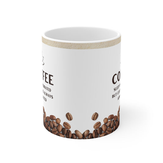 White Coffee Mug 11oz - Sleep is overrated but coffee is always appreciated